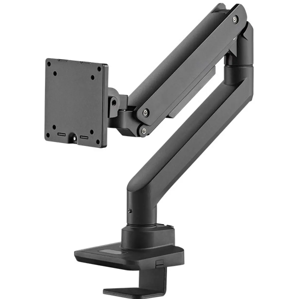 Este suporte de alta resistência é perfeito para manusear monitores XL de forma segura, tanto em ambientes de gaming como de trabalho. A instalação é simples e prática, podendo ser feita através de parafuso ou grampo, com materiais incluídos. O design VESA®-compatível facilita a substituição do monitor sem necessidade de ferramentas.