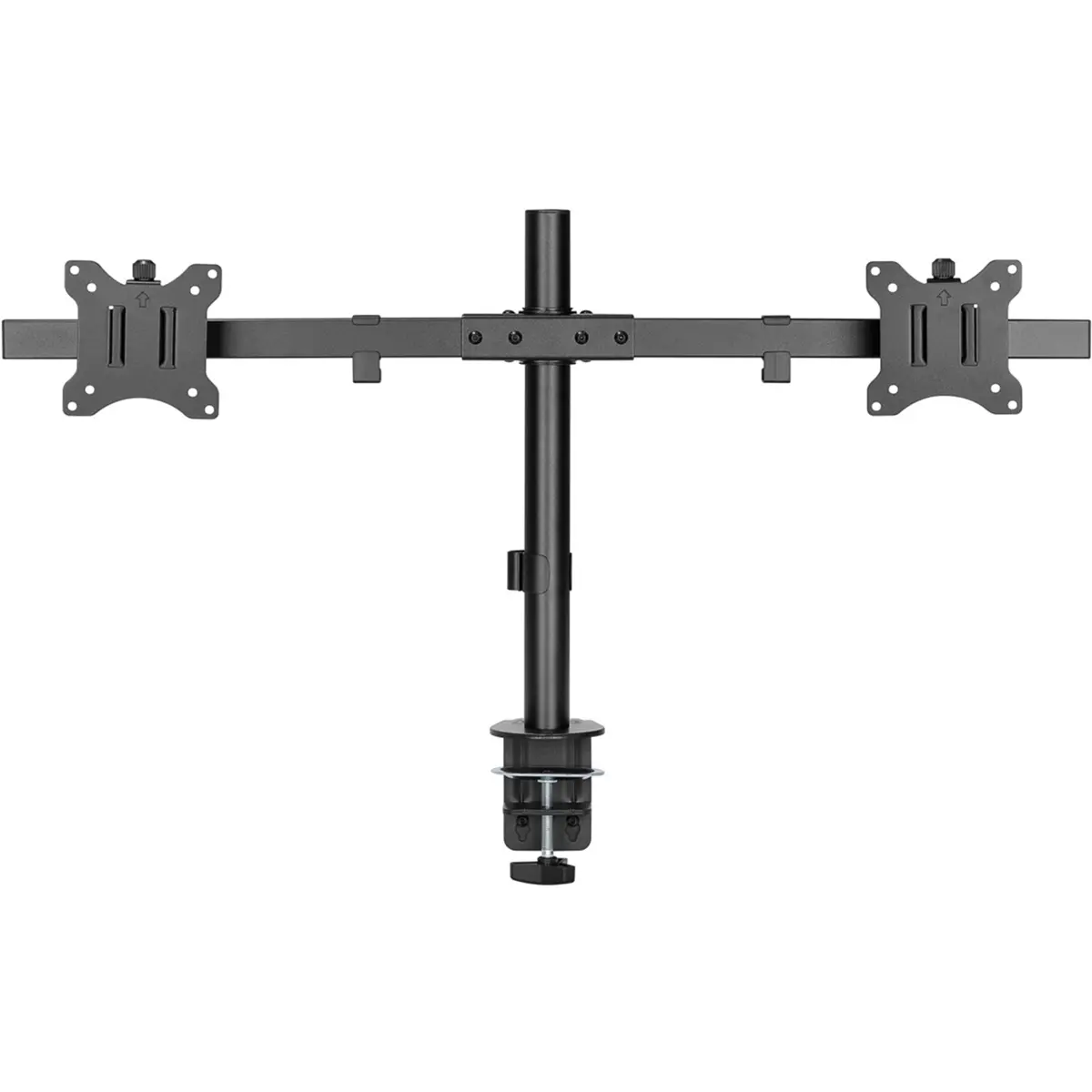Este suporte fixo para dois monitores é ideal para criar um espaço de trabalho eficiente e organizado, seja em casa ou no escritório. Compatível com monitores curvos e planos de 17 a 32 polegadas (43 a 81 cm) e com capacidade de 9 kg por monitor, oferece ajustes individuais de inclinação e rotação para garantir o melhor ângulo de visualização e reduzir reflexos. Os monitores são montados paralelamente numa única barra horizontal, permitindo um alinhamento fácil com apenas um movimento.