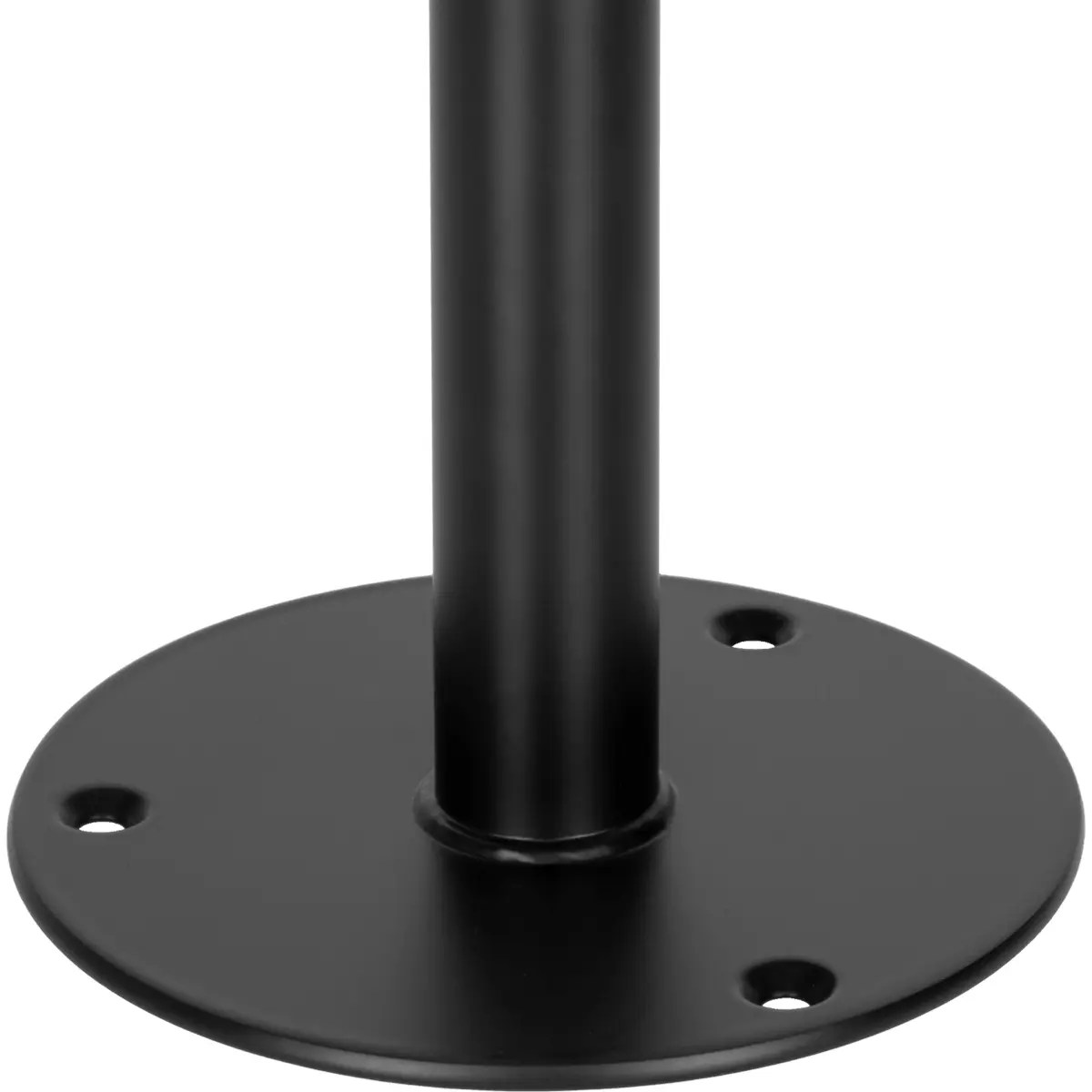 A estrutura robusta em aço, com um elegante acabamento preto mate, e a distância ajustável da parede garantem estabilidade e estética. Além disso, o conjunto inclui parafusos de montagem e buchas de fixação para uma instalação rápida e segura.