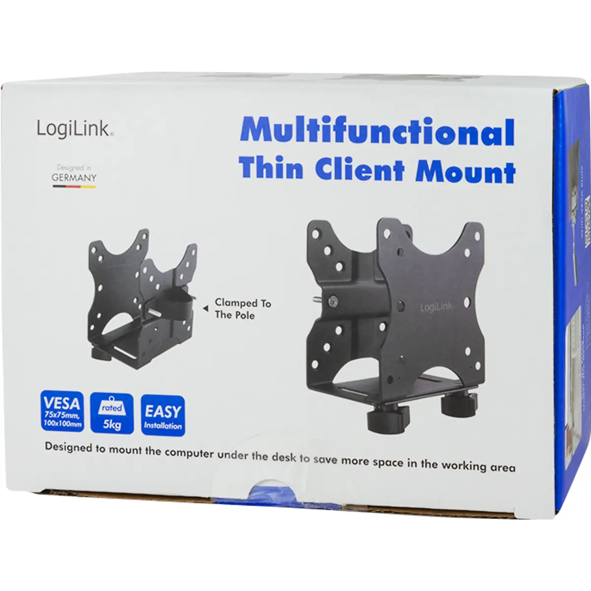O suporte multifuncional para mini PC da LogiLink permite libertar espaço na secretária e manter o equipamento seguro e organizado. Desenvolvido para fixar computadores compactos como Intel NUC, Mac mini e outros thin clients, pode ser montado debaixo da mesa, num suporte VESA ou preso a um varão. As correias incluídas garantem estabilidade adicional, evitando quedas ou vibrações. Uma solução prática e resistente para manter o seu mini PC protegido e o seu espaço de trabalho mais arrumado.