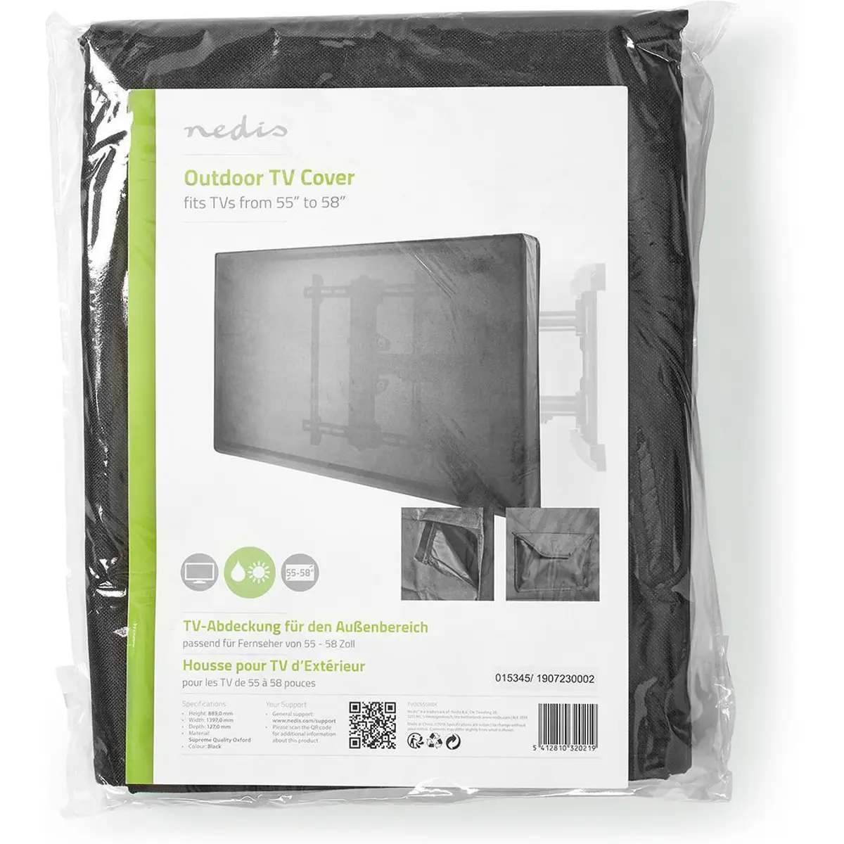 Use este protetor de tela Nedis® para proteger sua TV da chuva, humidade, vento, luz solar, pó e fezes de pássaros. Este protetor de tela de TV oferece proteção completa e é feito de um tecido Oxford de qualidade premium que resiste às intempéries.