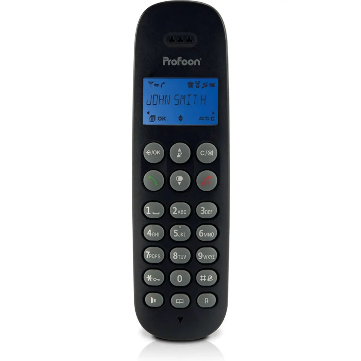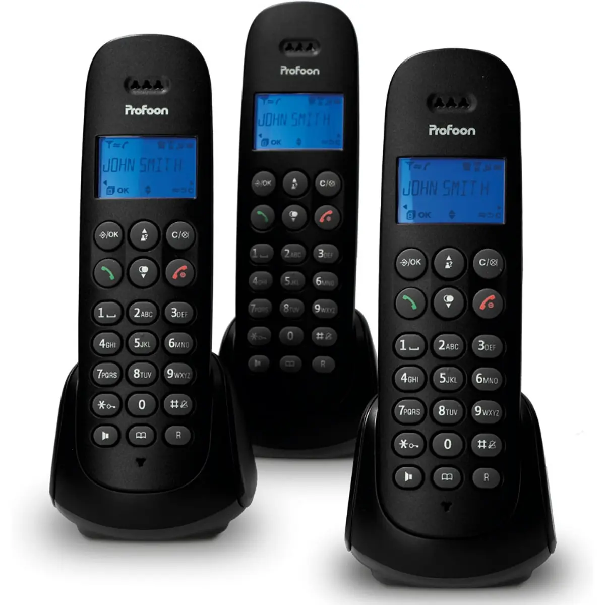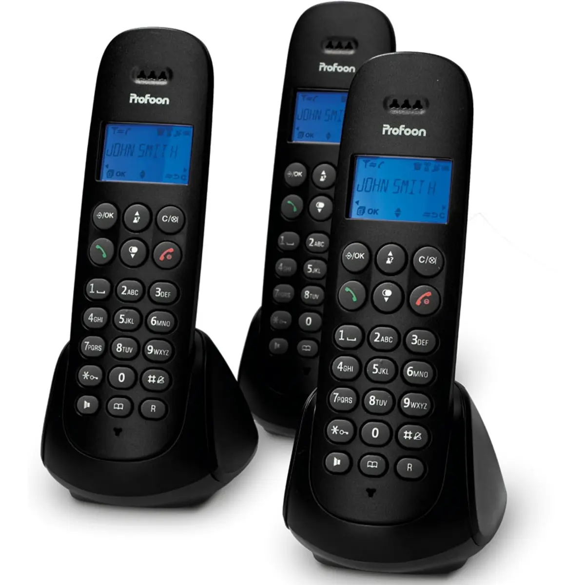 Conjunto de telefone e mais dois ramais wireless adicionais com lista telefônica, grande autonomia e facilidade de uso.