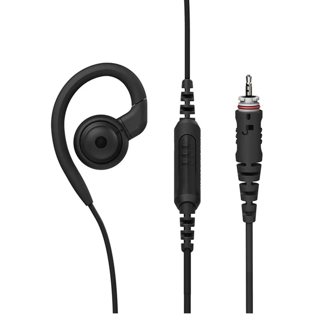 O formato “over-the-ear” (gancho para orelha) permite um uso prolongado com conforto, e o microfone em linha com botão PTT (push-to-talk) facilita a transmissão de voz sem necessidade de retirar o rádio do bolso ou suporte. O cabo curto torna o auricular mais discreto e reduz risco de ficar preso ou emaranhado. A construção robusta e o conector com sistema “twist and lock” garantem ligação segura e durabilidade mesmo em uso contínuo.