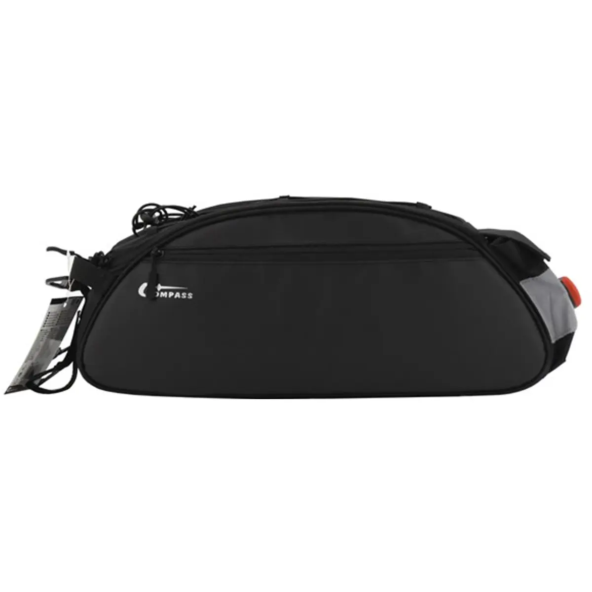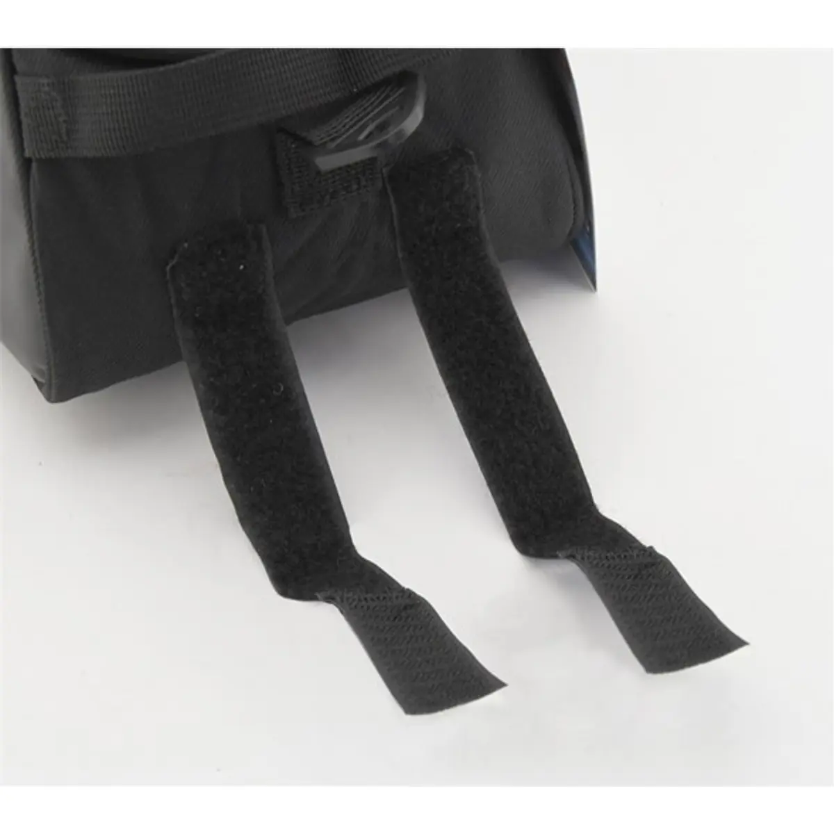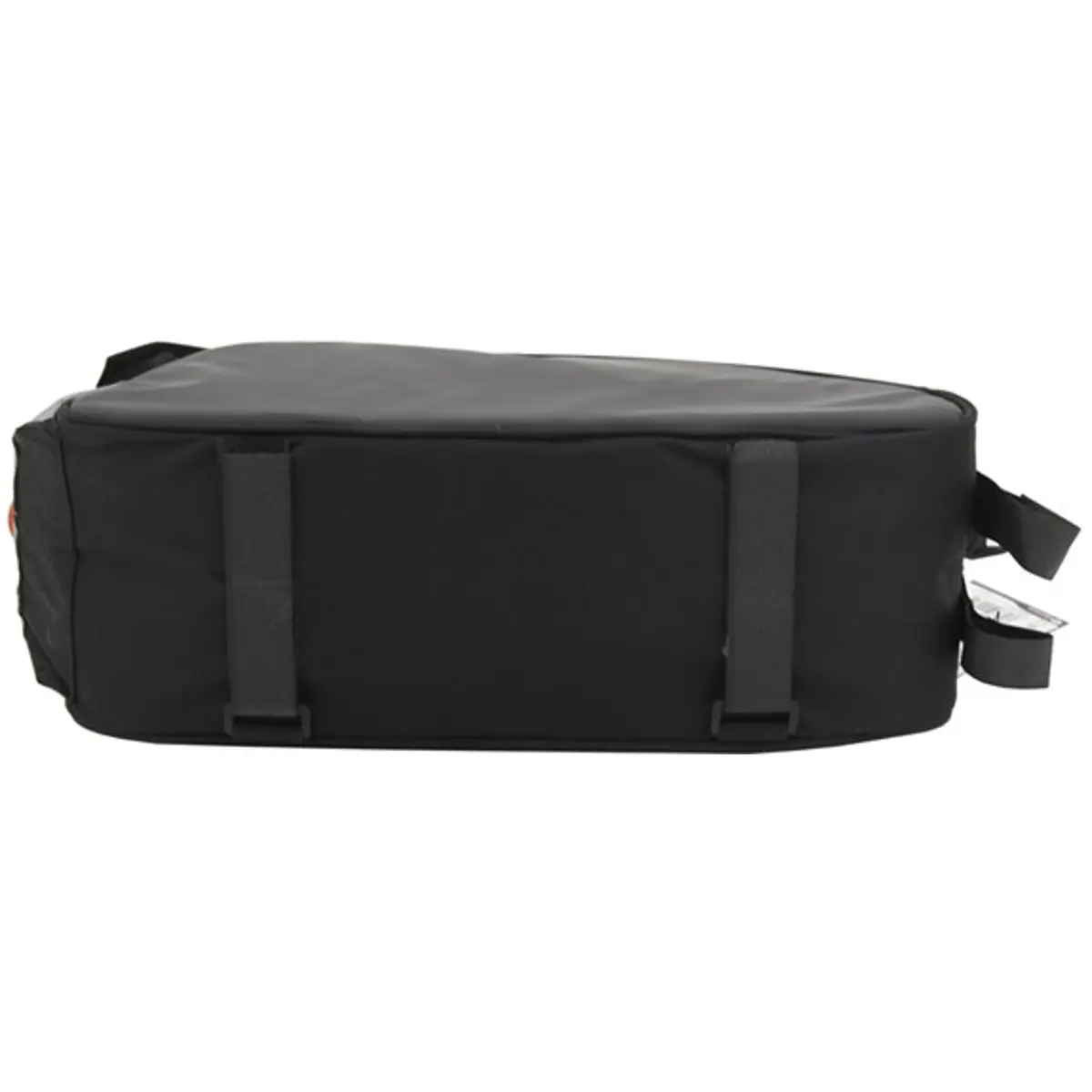 As fivelas ajustáveis permitem uma fácil fixação em diferentes tamanhos de transportador, localizadas na parte inferior e frontal. A bolsa também pode ser facilmente transportada depois de removida do transportador, graças à alça removível na parte superior. A parte superior também possui uma faixa elástica para prender outros acessórios.
