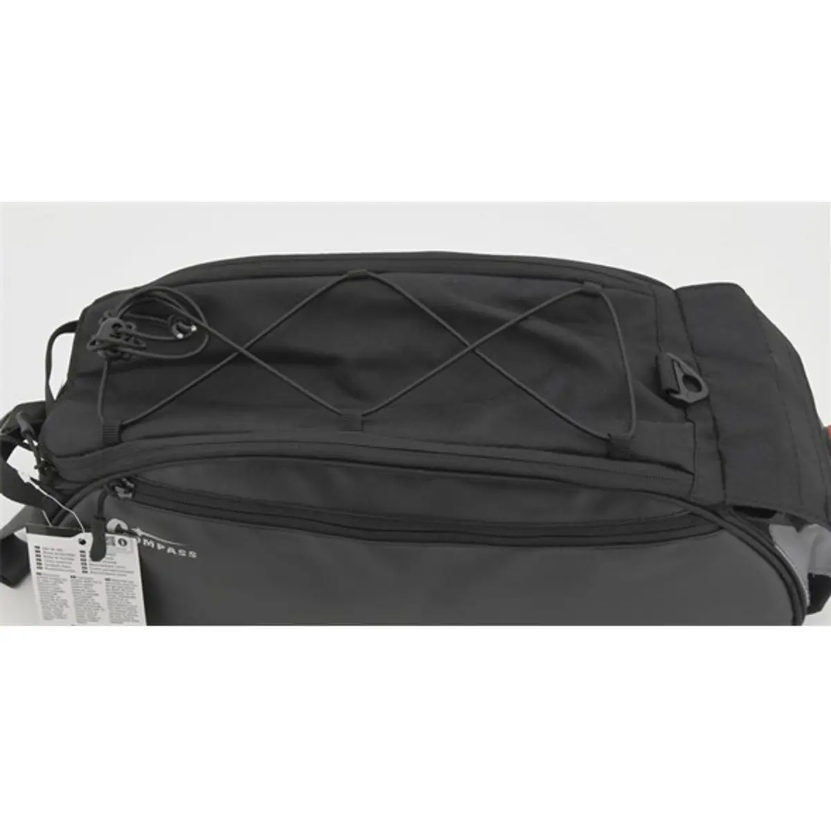 A bolsa possui um bolso principal de 11 litros e um bolso lateral com fecho de correr, além de um bolso na parte de trás, ideal para guardar pequenos itens, com fecho de velcro.